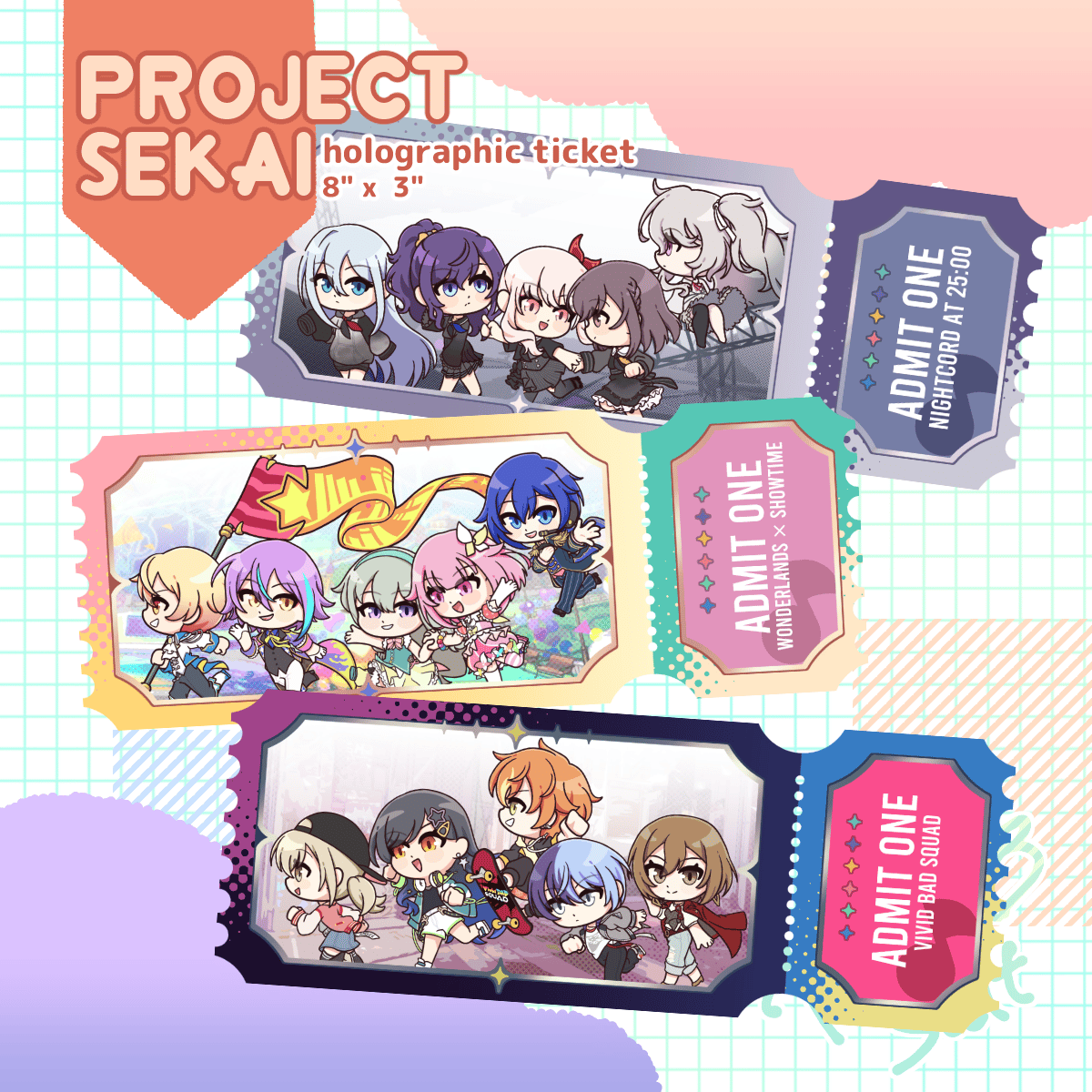 ✦ 8"x3"in ✦ Holographic ticket, double sided ⟡ Keep in mind of the slight color variation from screen monitor